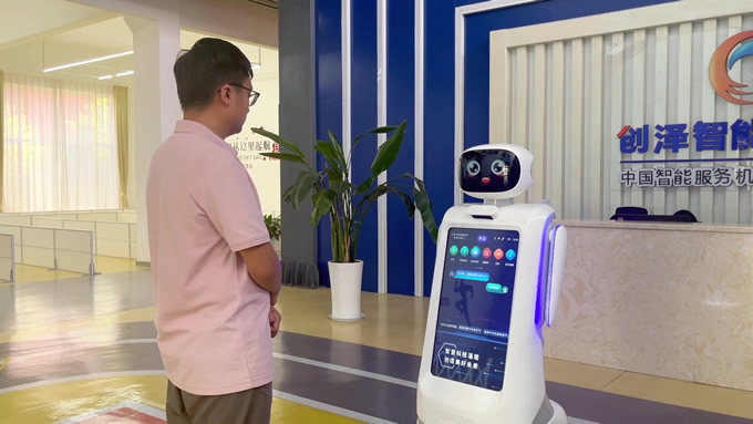 創(chuàng)澤智能消毒機器人和智能大屏機器人等多款機器人亮相蘭洽會,彰顯了創(chuàng)澤AI技術實力與場景深耕能力