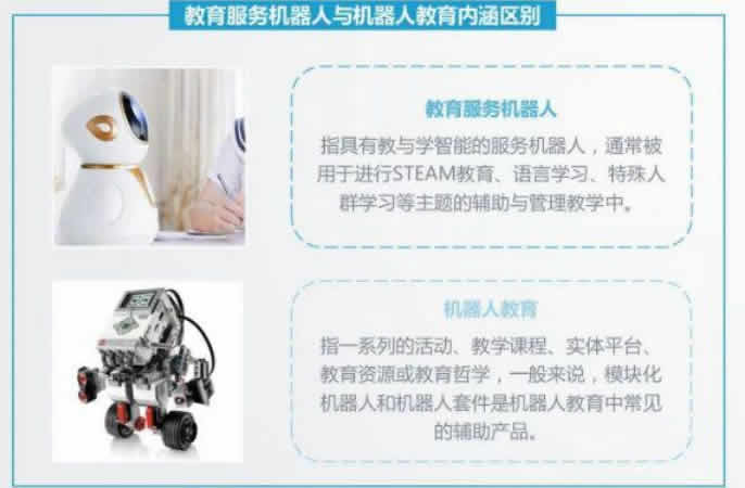 機(jī)器人教育:指一系列的活動(dòng)、教學(xué)課程、實(shí)體平臺(tái)、 教育資源或教育哲學(xué),一般來說,模塊化機(jī)器人和機(jī)器人套件是機(jī)器人教育中常見 的輔助產(chǎn)品。