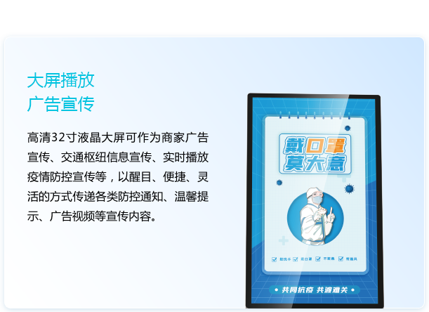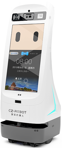 32寸主屏搭載可定制化模塊,提供迎賓接待、業(yè)務(wù)咨詢、體溫監(jiān)測(cè)等特色服務(wù)的智能大屏機(jī)器人。可實(shí)現(xiàn)接待講解、引導(dǎo)跟隨、宣傳巡邏等功能,還可提供人臉識(shí)別、二維碼掃描、身份證讀取、叫號(hào)、打印等特色服務(wù)。