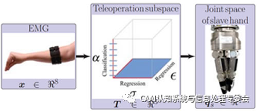 2019年,哥倫比亞團隊提出了一種由EMG驅(qū)動的非擬人化機器人手遙操作方法,這種方法將人前臂的EMG信號連續(xù)映射與遠程操作相關(guān)的三個子空間中,然后再從這個子空間映射到機器人手的關(guān)節(jié)空間[4]。這個方法有效且直觀,使新手操作者更快熟悉操作方案,可以魯棒地完成遠程操作拾取和放置任務(wù)。
