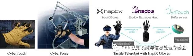 觸覺反饋對于接觸豐富的外部操作任務(wù)至關(guān)重要,觸覺設(shè)備已在外科手術(shù)機器人中得到廣泛研究,并用于在虛擬現(xiàn)實應(yīng)用程序中收集訓(xùn)練數(shù)據(jù),如HaptX development kit。一些商業(yè)產(chǎn)品CyberGlove、HaptX以物理阻力和空間接觸的形式提供了觸覺反饋,但是這種好處伴隨著成本的增加。HaptX與Converge Robotics Group(由國際公司組成的財團)共同開發(fā)了TactileTelerobot遠程機器人,以推動觸覺和機器人技術(shù)的發(fā)展 [6]。TactileTelerobot是世界上D一個能夠?qū)⒈普娴挠|摸反饋傳輸給位于世界各地的操作員的機器人系統(tǒng),該系統(tǒng)集成了三個主要產(chǎn)品,每個主要產(chǎn)品都在其類別中處于L先地位:Shadow Robot Hands,SynTouch BioTac傳感器和HaptX Gloves。Tactile Telerobot通過真實無延遲的觸覺反饋實現(xiàn)了多種機械手靈巧操作,如倒水、擰瓶蓋、轉(zhuǎn)魔方、寫字、開紙盒、幫人帶耳機,甚至人體按摩等。