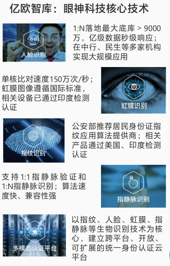 眼神科技是一家AI驅(qū)動的多模態(tài)生物識別技術(shù)解決方案提供商,擁有指紋識別、虹膜識別、人臉識別、指靜脈識別等多種自主知識產(chǎn)權(quán)生物識別技術(shù),并成功打造了多模態(tài)生物識別統(tǒng)一平臺,實現(xiàn)多場景、多應(yīng)用、多產(chǎn)品、多種識別技術(shù)統(tǒng)一管理。眼神科技基于多模態(tài)生物識別核心算法和統(tǒng)一平臺,賦能合作伙伴,實現(xiàn)場景落地,已經(jīng)服務(wù)于 2000+客戶,涵蓋了金融、教育、社保、公安、政府、軍隊以及企事業(yè)單位等多個L域, 與全國80%以上銀行機構(gòu)和超過100所G校達成合作。