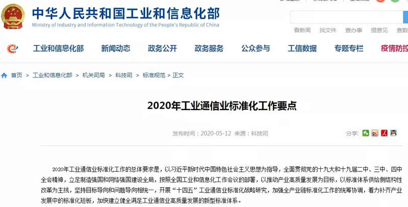 2020年5月12日,工信部發(fā)布《2020年工業(yè)通信業(yè)標(biāo)準(zhǔn)化工作要點(diǎn)》,提出聚焦5G網(wǎng)絡(luò)與應(yīng)用、人工智能、工業(yè)互聯(lián)網(wǎng)、物聯(lián)網(wǎng)、數(shù)據(jù)中心、車聯(lián)網(wǎng)、智能制造、無人機(jī)、超G清視頻、虛擬現(xiàn)實(shí)等重點(diǎn)L域,以專項(xiàng)方式成體系推進(jìn)重點(diǎn)L域行業(yè)標(biāo)準(zhǔn)制定工作,促進(jìn)產(chǎn)業(yè)基礎(chǔ)能力和產(chǎn)業(yè)鏈現(xiàn)代化水平提升。