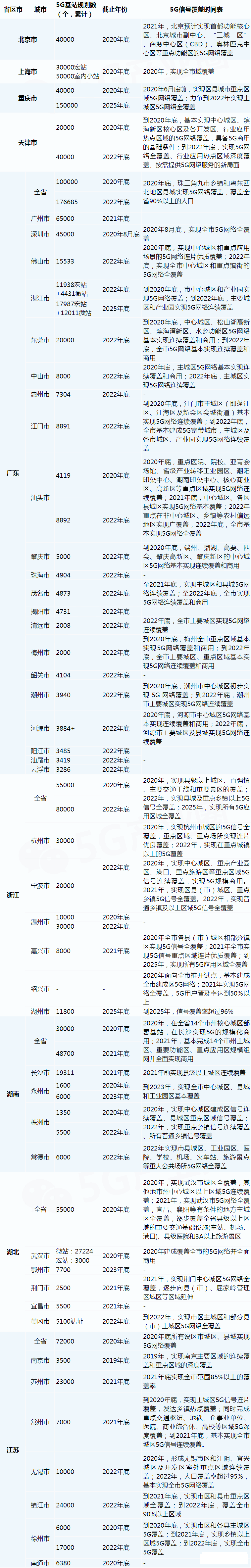 30省及部分地市5G建設(shè)規(guī)劃表如下:
