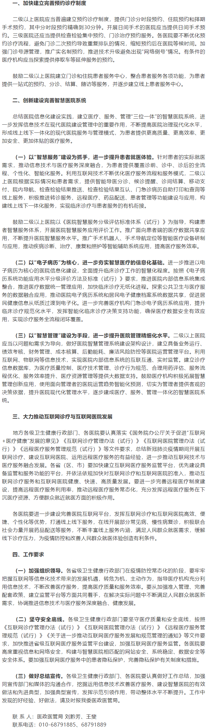 關(guān)于進(jìn)一步完善預(yù)約診療制度加強(qiáng)智慧醫(yī)院建設(shè)的通知【全文】