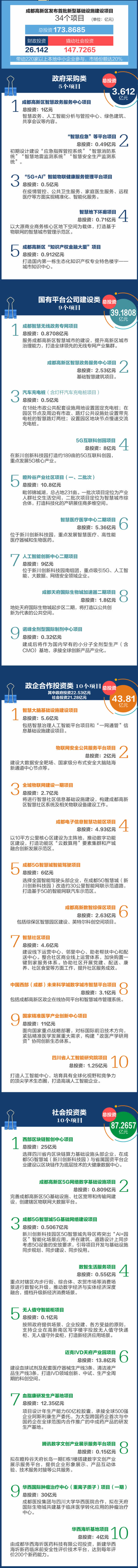 首批新基建項(xiàng)目總投資近180億元,其中,政府采購類項(xiàng)目5個、國有平臺公司建設(shè)類項(xiàng)目9個、政企合作投資類項(xiàng)目10個、社會投資類項(xiàng)目10個。項(xiàng)目中,成都5G智慧城智能駕駛項(xiàng)目、人工智能創(chuàng)新中心、車聯(lián)網(wǎng)智慧園等將落地成都G新區(qū)新川創(chuàng)新科技園。