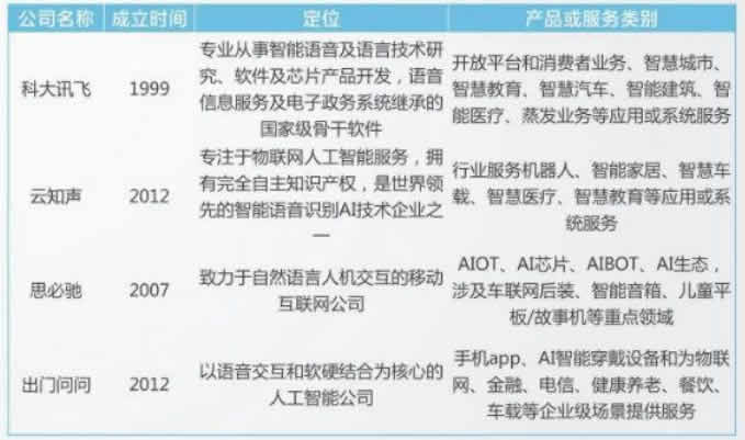 前國(guó)內(nèi)的頭部技術(shù)供應(yīng)商主要包括科大訊飛、云知聲、思必馳、出門(mén)問(wèn)問(wèn)等。它們均擁有自主核心科技,專注智能語(yǔ)音技術(shù)及輸出語(yǔ)音識(shí)別等應(yīng)用。其中科大訊飛的語(yǔ)音識(shí)別技術(shù)能力強(qiáng),市場(chǎng)占有率G。目前行業(yè)整體語(yǔ)音識(shí)別成功率已達(dá)較G水平,但在 具體落地時(shí)仍然會(huì)存在諸如語(yǔ)音交互效果受周?chē)h(huán)境影響較大、溝通方式不夠人性化等問(wèn)題,因此仍需在場(chǎng)景應(yīng)用層面繼續(xù)改善。