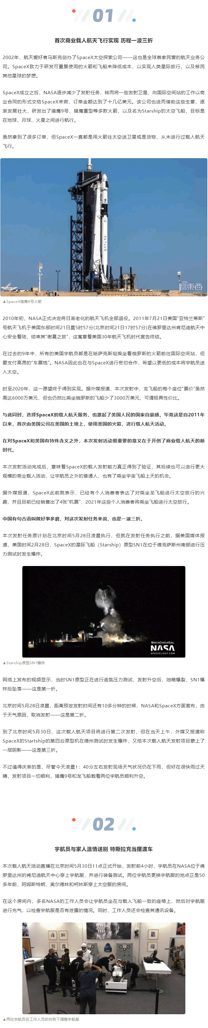 對(duì)全人類來說,這是D一次由民營航天公司將宇航員送上太空的項(xiàng)目,證明了載人航天——這項(xiàng)此前只有力量才能實(shí)現(xiàn)的工作,也可以被民營企業(yè)實(shí)現(xiàn),并進(jìn)行商業(yè)化運(yùn)作,未來私人太空旅行將成為可能。