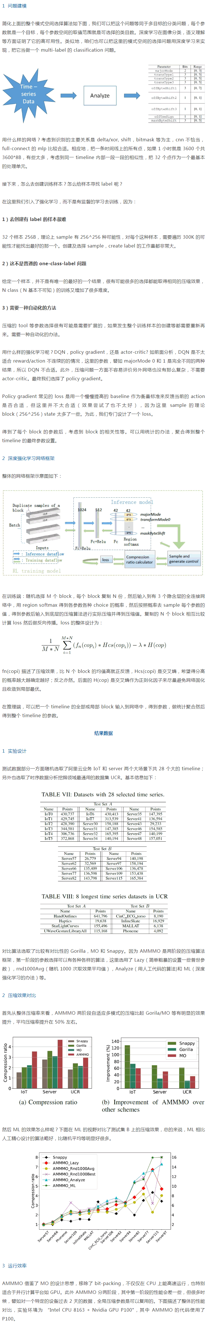 深度學(xué)習(xí)的本質(zhì)是做決策,用它解決具體的問(wèn)題時(shí)很重要的是找到契合點(diǎn),合理建模,然后整理數(shù)據(jù)優(yōu)化 loss 等終較好地解決問(wèn)題。在過(guò)去的一段時(shí)間,我們?cè)谟蒙疃葟?qiáng)化學(xué)習(xí)進(jìn)行數(shù)據(jù)壓縮上做了一些研究探索并取得了一些成績(jī),已經(jīng)在 ICDE 2020 research track 發(fā)表(Two-level Data Compression using Machine Learning in Time Series Database)并做了口頭匯報(bào)。在這里做一個(gè)整體粗略介紹,希望對(duì)其它的場(chǎng)景,至少是其它數(shù)據(jù)的壓縮等,帶來(lái)一點(diǎn)借鑒作用。