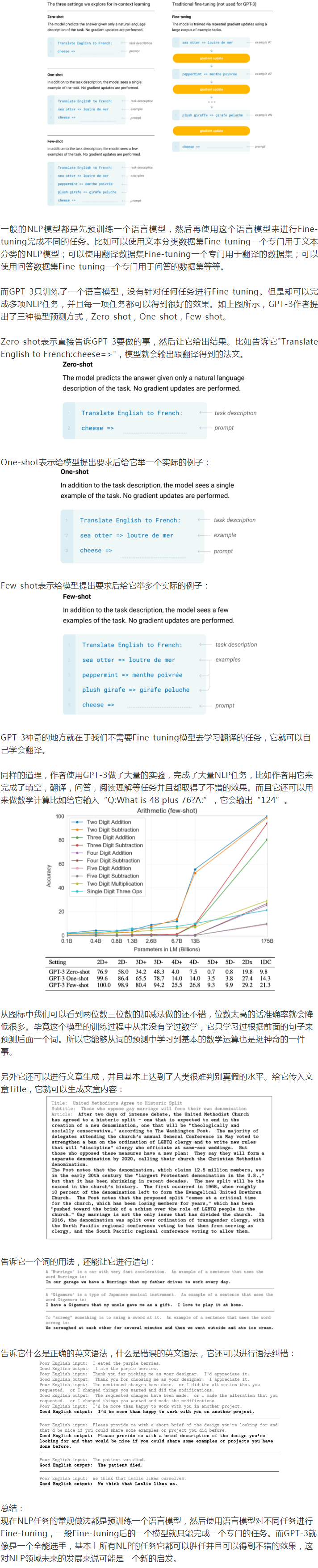 如此驚人的模型在模型的設(shè)計上和訓(xùn)練上有什么特別之處嗎?答案是沒有。作者表示GPT-3的模型架構(gòu)跟GPT-2是一樣的,只是使用了更多的模型參數(shù)。模型訓(xùn)練也跟GPT-2是一樣的,使用預(yù)測下一個詞的方式來訓(xùn)練語言模型,只不過GPT-3訓(xùn)練時使用了更多的數(shù)據(jù)。