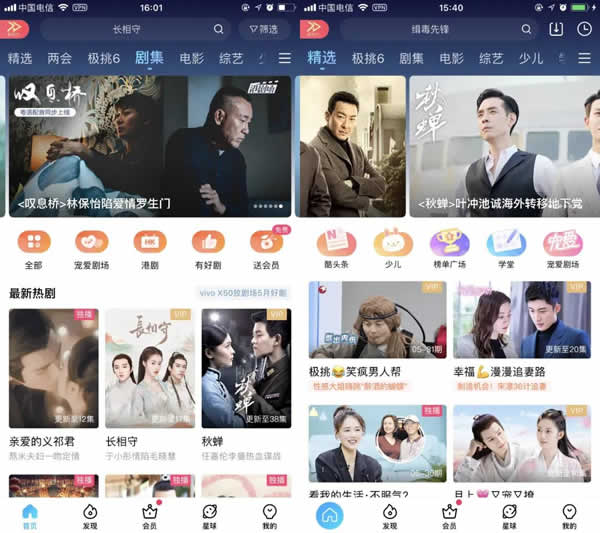 圖1 劇集頻道頁(yè)和首頁(yè)