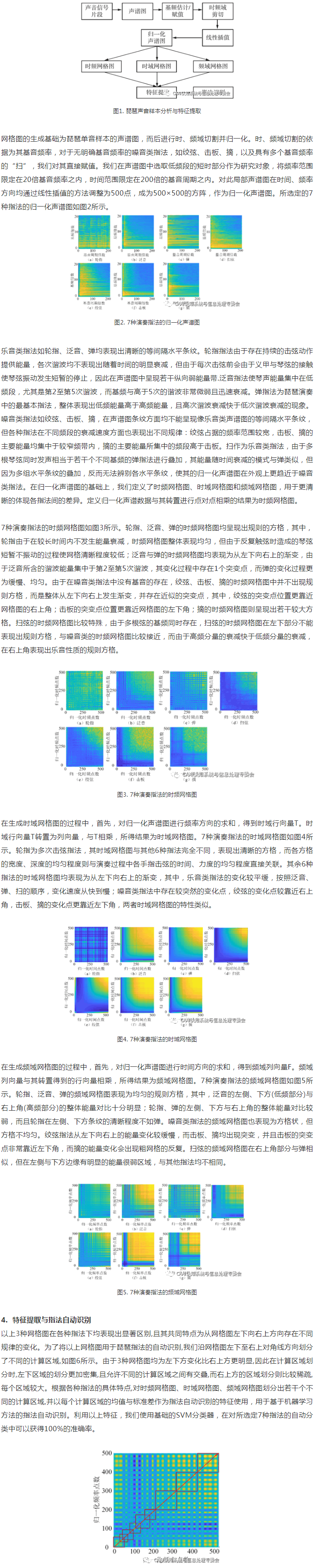 在人工智能方法飛速發(fā)展的今天,對樂器的演奏指法的自動分析在樂曲的檢索、鑒賞引導(dǎo)、演奏輔助學(xué)習(xí)等方面均具有重要意義。琵琶作為一種中國傳統(tǒng)樂器,對其進行自動分析的已有工作大多集中于對琵琶聲音的算法合成方面的探討[1-3],而在指法自動識別、分類方面涉及很少。在我們的工作中,提出了對琵琶不同指法所產(chǎn)生的聲音具有明顯區(qū)分度的網(wǎng)格圖特征,用于對幾種典型的琵琶演奏指法進行基于機器學(xué)習(xí)的自動識別。