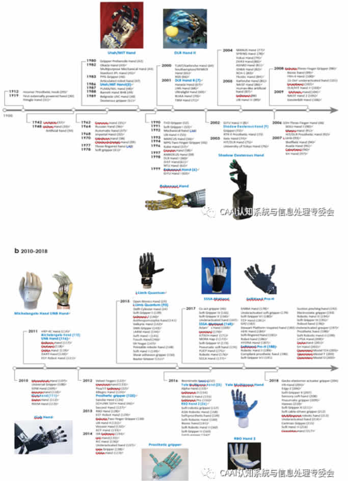 研究人員試圖通過復雜的設計來仿造人類雙手的外觀和靈活性,并集成了許多驅動器和傳感器,例如猶他/MITH、RobonautHand、DLR(Deutsches Zentrum für Luft- undRaumfahrt)Hand II、Gifu Hand II、Shadow Dexterous Hand及清華大學孫富春團隊開發(fā)的系列靈巧手等。雖然目前有很多實驗樣機,但在工業(yè)機器人、服務機器人甚至假肢方面,實際應用數(shù)量仍然有限。為了增加推廣,近年來已經(jīng)提出了一些新的方法和解決方案,以開發(fā)有效和可靠的靈巧手。事實上,雖然實現(xiàn)了出色的結構和功能擬人化——即不僅在外觀上,而且在動作和功能上與人類的手相似(可能會過于復雜),但近年有趨勢旨在實現(xiàn)穩(wěn)健的、易于編程的、經(jīng)濟實用的靈巧手,能夠執(zhí)行人手操作功能的子集。