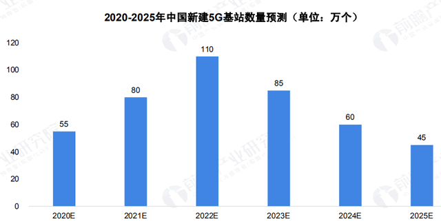以此價格進行計算,預計2020-2025年中國5G基站市場空間共計將超過7700億元。