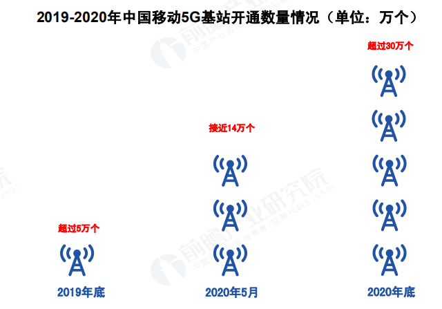 在2020年6月6日,工信部新聞宣傳中心舉行的“5G發(fā)牌一周年”線上峰會上,中國移動表示目前已開通近14萬個5G基站,并將加快網(wǎng)絡建設,確保年內(nèi)累計建成30萬個5G基站,實現(xiàn)在全國所有地級以上城市提供5G商用服務,夯實經(jīng)濟社會數(shù)字化轉型的網(wǎng)絡基礎。