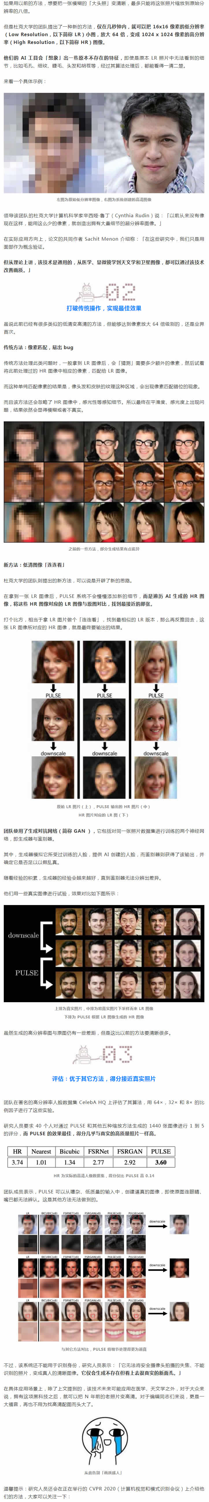 杜克大學(xué)的研究人員提出了一種 AI 算法,稱之為 PULSE(Photo Upsampling via Latent Space Exploration,通過潛在空間探索的照片上采樣)。