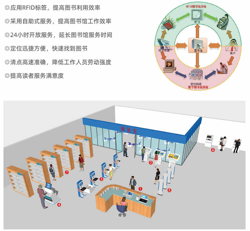 對(duì)于一個(gè)現(xiàn)代化管理的圖書館來(lái)說(shuō),從某種意義上講,如何減少人員的浪費(fèi),如何提G效率、 是G服務(wù)水平是個(gè)有待解決的問(wèn)題。因此,如何結(jié)合的計(jì)算機(jī)及相關(guān)應(yīng)用技術(shù),幫助圖書館改善現(xiàn)狀,提G圖書館的智能化管理,成為國(guó)內(nèi)外圖書館關(guān)注的一個(gè)焦點(diǎn)問(wèn)題。目前,創(chuàng)澤RFID系統(tǒng)可以解決以上圖書館所面臨的問(wèn)題,既可以讓圖書館工作人員更輕松的進(jìn)行盤點(diǎn)、歸架、順架工作,減少他們的工作強(qiáng)度,增加工作效率的同時(shí),又可以讓讀者更輕松快速的完成借閱,同時(shí)還具備出色的防盜功能,更有效的減少圖書館的失竊率。