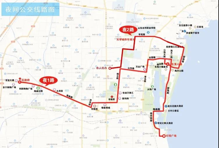 為助力夜間經(jīng)濟(jì)發(fā)展,進(jìn)一步滿足市民夜間出行需求,經(jīng)前期調(diào)研,擬于6月20日起試運(yùn)行由“東夷小鎮(zhèn)北”站經(jīng)東營路、青島路、山東路、煙臺(tái)路、泰安路、菏澤路、海曲路至“東港區(qū)政府”站的公交夜1路,由“市人防辦”站經(jīng)山東路、煙臺(tái)路、濱州路、學(xué)海路、學(xué)苑路、太公島二路、碧海路、海曲路、綠舟南路至“燈塔廣場(chǎng)”站的公交夜2路。具體情況如下: