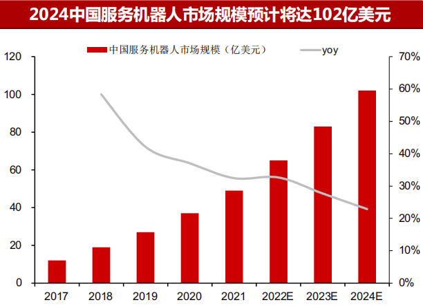服務(wù)機器人中國市場規(guī)模-2024年CAGR約29%