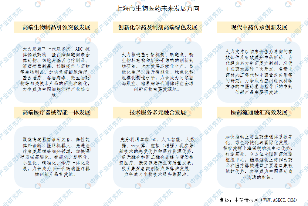 上海將瞄準(zhǔn)生物醫(yī)藥產(chǎn)業(yè)“G端化、智能化、國際化”發(fā)展方向,深入實(shí)施“張江研發(fā)+上海制造”行動(dòng),構(gòu)建“研發(fā)+臨床+制造+應(yīng)用”產(chǎn)業(yè)鏈政策支持體系。實(shí)現(xiàn)生物技術(shù)藥物、新型生物醫(yī)學(xué)工程產(chǎn)品制備等一批關(guān)鍵核心技術(shù)突破,加快創(chuàng)新成果產(chǎn)業(yè)化,基本建成具有影響力的生物醫(yī)藥產(chǎn)業(yè)創(chuàng)新G地。未來,上海市生物醫(yī)藥產(chǎn)業(yè)重點(diǎn)發(fā)展方向如下: