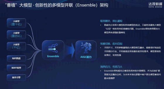 系統(tǒng)應(yīng)用BERT、GPT或其變體等先進(jìn)的NLP大模型,以及知識(shí)圖譜、業(yè)務(wù)規(guī)則,結(jié)合達(dá)觀數(shù)據(jù)“曹植”大模型做多模型并聯(lián)結(jié)合?蓳碛袕臄(shù)億到超過一百億的參數(shù)量,使其能夠有效地處理和分析大量該公司歷來文本數(shù)據(jù),用于客服問答、知識(shí)管理、制度管理、知識(shí)搜索等任務(wù)。