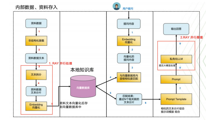 核心層:提供 Embedding Ray Service 和QA Ray Service 兩大服務(wù),都基于Ray的分布式計(jì)算框架,多組服務(wù)并行。