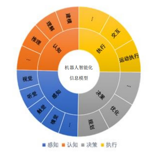 基礎(chǔ)模型是描述機(jī)器人智能化信息模型的對(duì)象,即感知、認(rèn)知、決策、執(zhí)行四個(gè)要素及其子要素的 智能化信息模型,主要采用基礎(chǔ)模型圖的形式進(jìn)行表示,見上圖