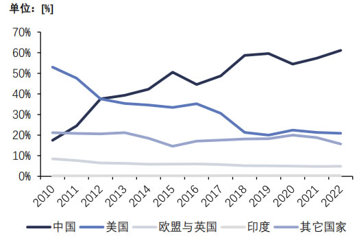 國(guó)家。排名D二的美國(guó)占比為20.9%,而
