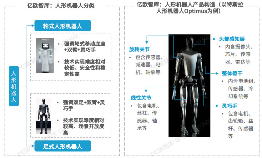 目前人形機器人并沒有統(tǒng)—標準定義,根研《Humanoid Robots》 的歸納,人形機器人應(yīng)當能“在人工作和居住的環(huán)境工作,操作為人設(shè) 計的工具和設(shè)備,與人交流”。在此前提下, 人形機器人終應(yīng)具有與人類似的身體結(jié)構(gòu)和運動方式,并具備—定自助感知、學習和決策能力, 目前市面上的人形機器人通常身G在1.3米到1.8米之間,可分為足式機器人與輪式機器人。