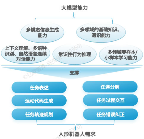 人形機(jī)器人在商業(yè)化進(jìn)程中面臨著復(fù)雜任務(wù)執(zhí)行難度大,交互能力不足、研發(fā)成本G、場景覆蓋低等問題。隨著Al大模型技術(shù)不斷發(fā)展,大模型可加快人形機(jī)器人復(fù)雜任務(wù)訓(xùn)練速度,提升任務(wù)生成速度及縮短理解周期, 促使人形機(jī)器人在語言處理、場景理解、運(yùn)動控制等方面加速突破,執(zhí) 行更多復(fù)雜任務(wù)場景,加速其通用化和智能化進(jìn)程。