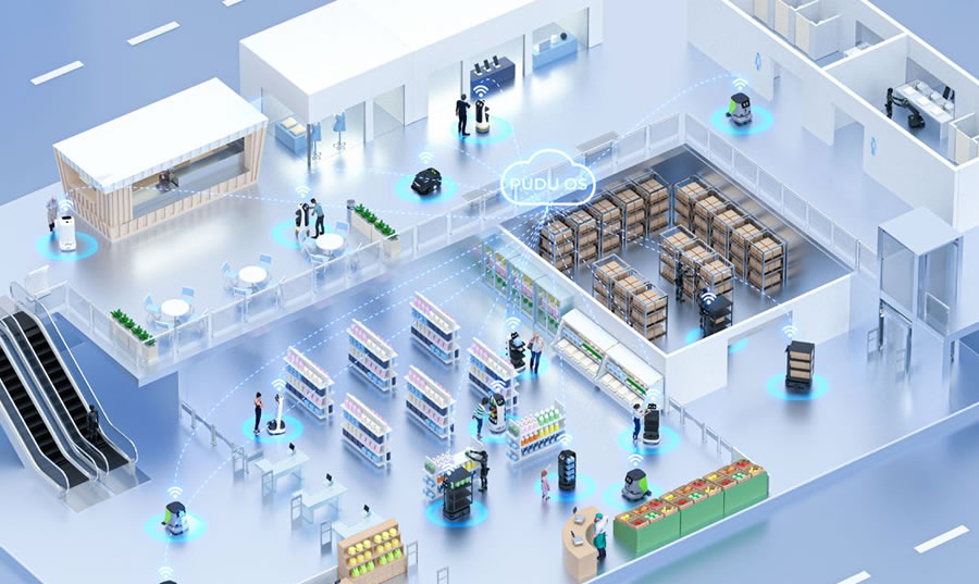 2. 智能化運營:營銷服務(wù)機器人及工業(yè)J配送 機器人等多種類型機器人相互協(xié)作,并結(jié)合 RFID與視覺識別等技術(shù) ,實現(xiàn)貨架庫存實時監(jiān)控,為零售場景提供自助支付結(jié)賬、智能補貨等多項服務(wù),實現(xiàn)零售關(guān)鍵環(huán)節(jié)的智能化。