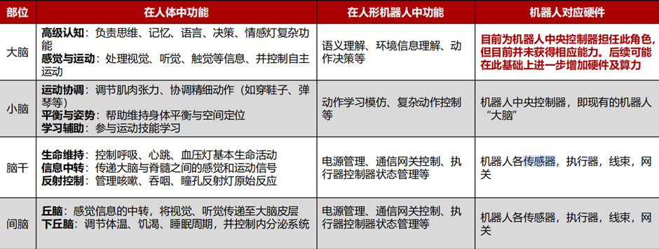 依照低層次感知到G層次感知逐個來看,人腦的間腦與腦干在機(jī)器人中對應(yīng)的主要是
