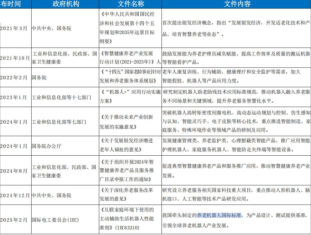 基于社會老齡化和安全戰(zhàn)略考量,21年來黨和密集出臺多項養(yǎng)老機器人D層政策文件,彰顯對老齡化工作的