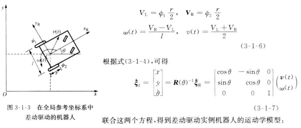 先,我們討論如圖3-1-3所示的雙輪差速驅(qū)動的移動機器人的運動學(xué)模型, 即討論給定機器人的幾何特征和它的輪子速度后,機器人的運動方程。