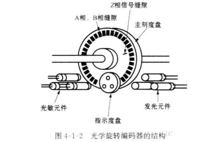 以圖4-1-2為例說明光學編碼器的結(jié)構(gòu)。光學編碼器由發(fā)光元件、屏蔽光的固 定光柵、與轉(zhuǎn)軸一起旋轉(zhuǎn)的帶光柵的轉(zhuǎn)盤和固定的光敏元件組成。發(fā)光元件和光敏 元件安放在碼盤的兩側(cè),當轉(zhuǎn)盤轉(zhuǎn)動時,根據(jù)固定的和運動的光柵的排列,光敏元件 接收的光通量會發(fā)生變化。光敏元件輸出的波形經(jīng)過整形后形成脈沖,根據(jù)脈沖計 數(shù),可以得到固定在碼盤上的轉(zhuǎn)軸的角位移。在測量中,Z后得到的光強信號用閾 值變換成離散的方波,在亮和暗的狀態(tài)之間作選擇。分辨率以每轉(zhuǎn)周期數(shù)(CPR)度量。Z小的角分辨率可以容易地從編碼器的CPR 額定值計算出。典型的編碼 器可擁有2000 CPR, 而光學編碼器工業(yè)可容易地制造出具有10000 CPR 的 編 碼 器。當然,根據(jù)所需的帶寬,Z關(guān)鍵的是編碼器需要足夠快,以計算期望的軸轉(zhuǎn)速。