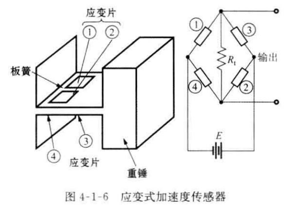 應(yīng)變片加速度傳感器3:應(yīng)變片加速度傳感器是由一個板簧支承重錘所構(gòu)成 的振動系統(tǒng)。在板簧兩面分別貼兩個應(yīng)變片,應(yīng)變片受振動產(chǎn)生應(yīng)變,其電阻值的 變化通過電橋電路的輸出電壓被檢測出來。