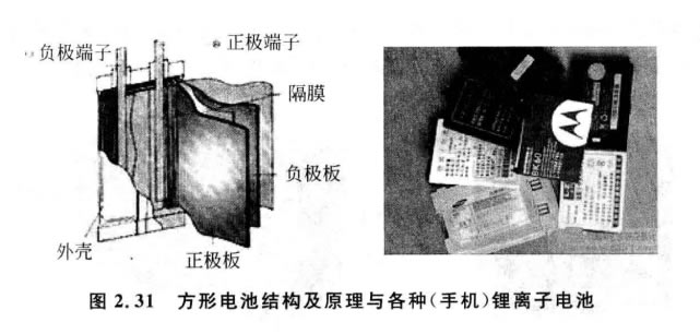 鋰電池是指電化學(xué)體系中含有鋰(包括金屬鋰、鋰合金、鋰離子、鋰聚合物),由鋰金 屬或鋰合金為負(fù)極材料、使用非水電解質(zhì)溶液的電池。鋰電池大致分為鋰金屬電池和鋰 離子電池兩類。鋰金屬電池內(nèi)含金屬態(tài)鋰,它通常是不可充電的。鋰離子電池不含有金 屬態(tài)鋰,它可以充電。Z早出現(xiàn)的鋰電池來自于偉大的發(fā)明家愛迪生,他使用了反應(yīng) Li+MnO₂=LiMnO₂ 。 該反應(yīng)為氧化還原反應(yīng)和放電。由于鋰金屬的化學(xué)特性非; 潑,使得鋰金屬的加工和保存及使用對(duì)環(huán)境要求非常高,所以鋰電池長期沒有得到廣泛 應(yīng)用。但是,鋰電池現(xiàn)在已經(jīng)成為了主流,如圖2.31所示。鋰離子電池中因?yàn)椴缓兄?金屬鎘,與鎳鎘電池相比較,它可以大大減少對(duì)環(huán)境的污染。