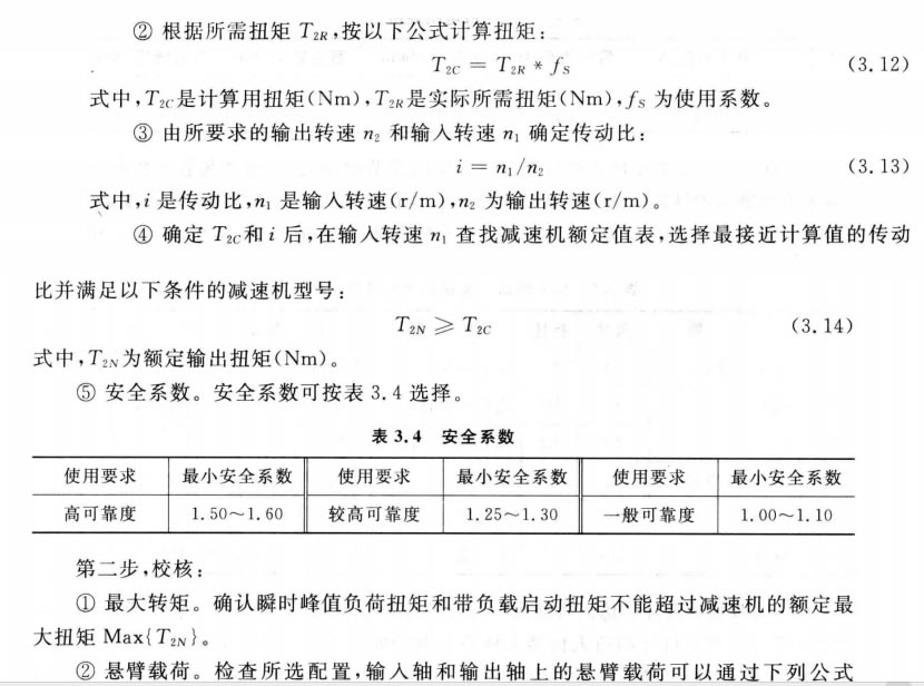 (4)精密行星減速機(jī)選型及其問題。選用精密行星減速機(jī)應(yīng)考慮其結(jié)構(gòu)類型、安裝 形式、承載能力、輸出轉(zhuǎn)速、工作條件等因素。減速機(jī)的承載能力是在額定轉(zhuǎn)速下,每天 工作10小時(shí)和啟動(dòng)數(shù)少于10time/h 及平穩(wěn)無(wú)沖擊的條件下得出的,所以應(yīng)按以下步驟 進(jìn)行選型[97]。