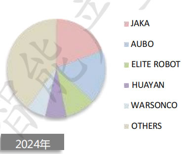 隨著工業(yè)機器人廠商加速進入?yún)f(xié)作機器人市場,2024 年市場集中度微幅降低。TOP5 廠商份額維持在 60%,相比 2023 年有一定降低。各家廠商積極尋求突破,排名切換激烈。整個協(xié)作機器人市場參與玩家正在不斷增多, 市場也暫未定型,各類玩家蓄勢待發(fā)。