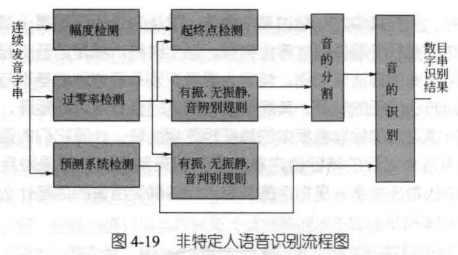由于上述識(shí)別系統(tǒng)都是針對(duì)非特定人的,所以它與特定人的語(yǔ)音識(shí)別系統(tǒng) 相比,一般性要求較高。語(yǔ)言識(shí)別系統(tǒng)可以懂得話音的含義。這種系統(tǒng)先要把 話音分割成單詞(或音素),然后進(jìn)行語(yǔ)法分析,Z后辨識(shí)出話音的含義,可見 這種系統(tǒng)是相當(dāng)復(fù)雜的。在小詞匯量語(yǔ)音識(shí)別方面,用得Z多的是模式匹配方 法,實(shí)用的系統(tǒng)已經(jīng)出現(xiàn);基于統(tǒng)計(jì)模型的隱 Markov 模型,則在大詞匯量的語(yǔ) 音識(shí)別上取得了很大的進(jìn)展,但目前尚在研究發(fā)展之中,可靠性有待進(jìn)一步提 高。實(shí)現(xiàn)非特定人語(yǔ)音識(shí)別的流程如圖4-19所示。相比之下,數(shù)字音識(shí)別系統(tǒng) 比較簡(jiǎn)單。這種語(yǔ)音識(shí)別系統(tǒng)的工作原理與特定人的語(yǔ)音識(shí)別系統(tǒng)有很多相同之 處,這里只介紹連續(xù)數(shù)字音識(shí)別系統(tǒng)。