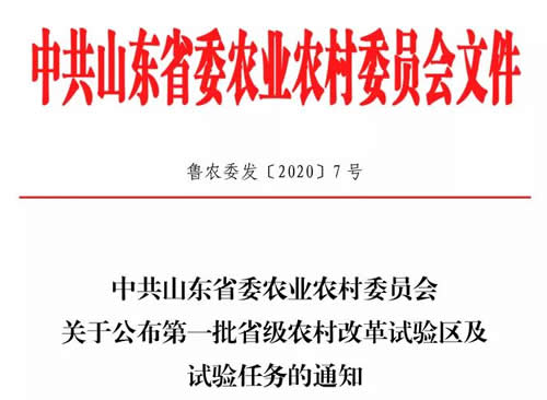 近日,省委農業(yè)農村委員會印發(fā)《關于公布D一批省級農村改革試驗區(qū)及試驗任務的通知》(魯農委發(fā)〔2020〕7號)