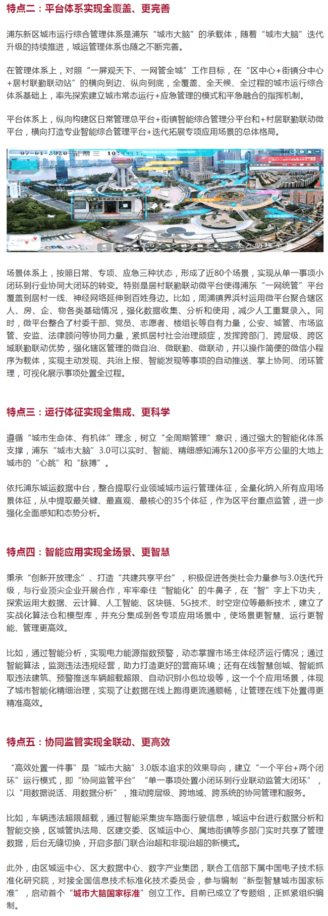 浦東“城市大腦”3.0版本,堅持從群眾需求和城市治理突出問題出發(fā),緊扣市“一網(wǎng)通辦、一網(wǎng)統(tǒng)管”建設推進大會以及十一屆市委九次全會精神,始終把人民對美好生活的向往作為奮斗目標,將“人民城市人民建,人民城市為人民”重要理念落實到建設運行的全過程和各L域,以智能化為突破口,全方位整合城市運行管理力量,全鏈條貫通城市運行管理體系,全覆蓋構建智能監(jiān)管應用場景,全要素建立協(xié)同G效監(jiān)管模式,努力實現(xiàn)城市治理亂點趨零、安全生產(chǎn)隱患趨零、綜合管理應急歸零。3.0版本在治理要素、平臺體系、運行體征、智能應用、協(xié)同監(jiān)管上體現(xiàn)了五大提升,打造更精細、更完善、更科學、更智慧、更G效的“一張網(wǎng)”。