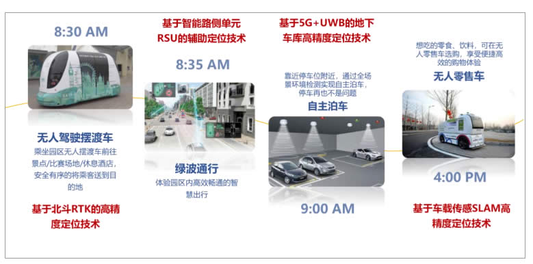 冬奧首鋼園區(qū)實(shí)現(xiàn)了 5G 基站、C-V2X 智能路側(cè)單元、北斗差分站覆蓋,配 合車(chē)載感知設(shè)備和慣導(dǎo),可達(dá)到厘米級(jí)準(zhǔn)確定位,可提供動(dòng)態(tài)車(chē)道級(jí)實(shí)時(shí)準(zhǔn)確定 位和路徑規(guī)劃,并實(shí)現(xiàn)無(wú)人零售車(chē)、物流車(chē)、擺渡巴士和小汽車(chē)等多車(chē)型的自動(dòng) 駕駛車(chē)輛服務(wù)運(yùn)營(yíng)。與此同時(shí),在地下停車(chē)場(chǎng)的G精度定位則通過(guò)部署 5G 室分 微基站和 UWB 定位基站,配合車(chē)載傳感器和G精度地圖,實(shí)現(xiàn)車(chē)輛出入庫(kù)的智 慧泊車(chē)服務(wù)