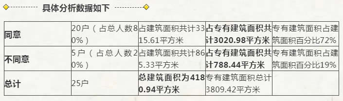 2016年1月10日,湛江市霞山區(qū)某小區(qū)就召開了業(yè)主大會,并作出決議,確認該小區(qū)業(yè)主共有66戶,其中同意加裝小區(qū)電梯的業(yè)主數(shù)為52戶(東門總共25戶,其中20戶同意加裝;中門總共17戶,其中9戶同意加裝;西門總共24戶,其中23戶同意加裝),該小區(qū)業(yè)主大會會議決定:在該小區(qū)東門、西門各加裝一臺電梯。2016年11月18日,根據(jù)該小區(qū)的申請,湛江規(guī)劃局依法頒布了在該小區(qū)東門、西門各加裝一臺電梯的《建設(shè)工程規(guī)劃許可證》。小區(qū)西門的電梯安裝較為順利,但東門不同意安裝的5位業(yè)主對在東門安裝電梯的工程實施中百般阻撓,將車輛停放在施工現(xiàn)場以阻礙施工。經(jīng)派出所、社區(qū)法律顧問等多方調(diào)解無效后,2017年9月11日,東門同意安裝的李康林等20人將不同意安裝的戴戈等5人訴上法庭,要求被告移走障礙物,不得阻止電梯安裝。 經(jīng)法院查明,涉及本案的業(yè)主共有25戶,分為三種戶型,E號戶型的建筑面積為182.78平方米、專有建筑面積為166.54平方米,F(xiàn)號戶型的建筑面積為144.48平方米、專有建筑面積為131.64平方米,G號戶型的建筑面積為172.51平方米、專有建筑面積為157.18平方米。同意加裝電梯的戶主有20戶,其中E號戶型有6戶,F(xiàn)號戶型有7戶,G號戶型有7戶,占建筑面積共計3315.61平方米,占專有建筑面積共計3020.98平方米。不同意加裝電梯的戶主有5戶,其中E號戶型有3戶,F(xiàn)號戶型有1戶,G號戶型有1戶,占建筑面積共計865.33平方米,占專有建筑面積共計788.44平方米。涉案樓房東門業(yè)主的總建筑面積為4180.94平方米。