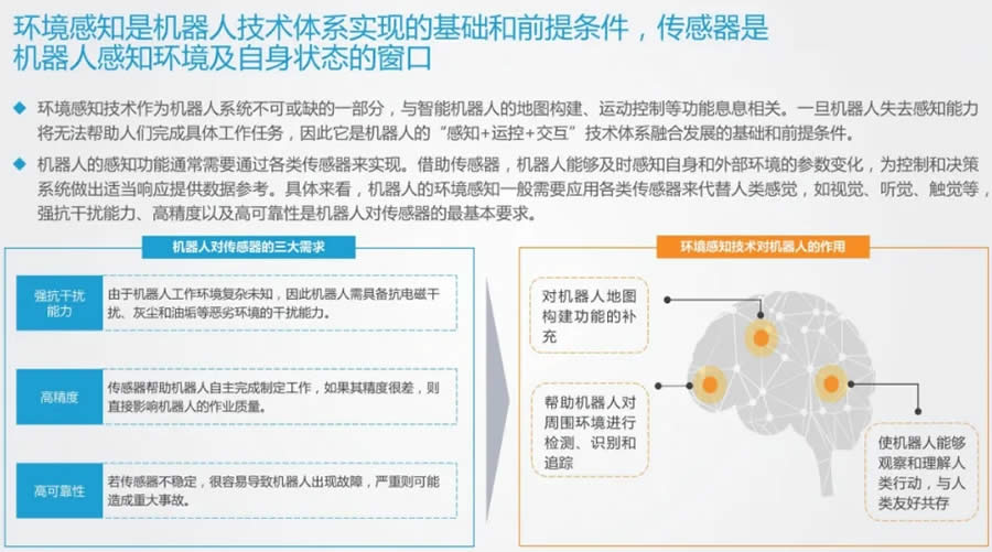 環(huán)境感知是機器人技術體系實現(xiàn)的基礎和前提條件,傳感器是機器人感知環(huán)境及自身狀態(tài)的窗口。