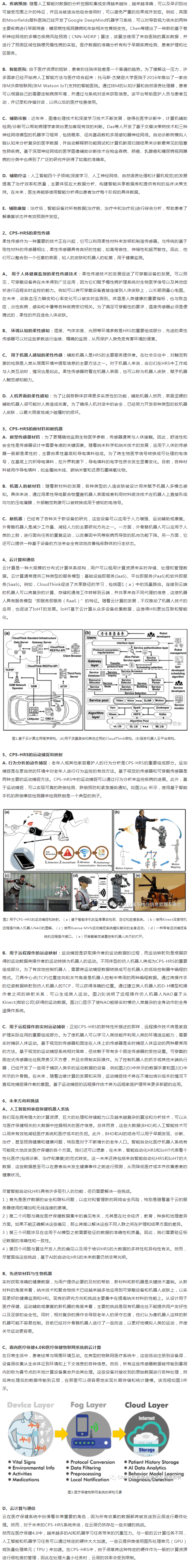 受益于人工智能、無線通信、云計算和大數(shù)據(jù)技術(shù)的進(jìn)步,出現(xiàn)了以機(jī)器人和智能技術(shù)為核心的老年人居家護(hù)理新局面。在人工智能驅(qū)動的CPS-HRS中,機(jī)器人可以作為專家醫(yī)生和專業(yè)護(hù)理人員的D二身體,執(zhí)行疾病預(yù)測、輔助診斷、輔助治療和輔助康復(fù)。智能醫(yī)院的人工智能也可以應(yīng)用于CPS-HRS中老年人的居家、社區(qū)醫(yī)療保健。