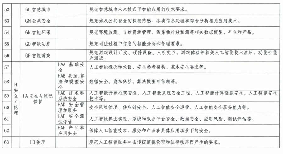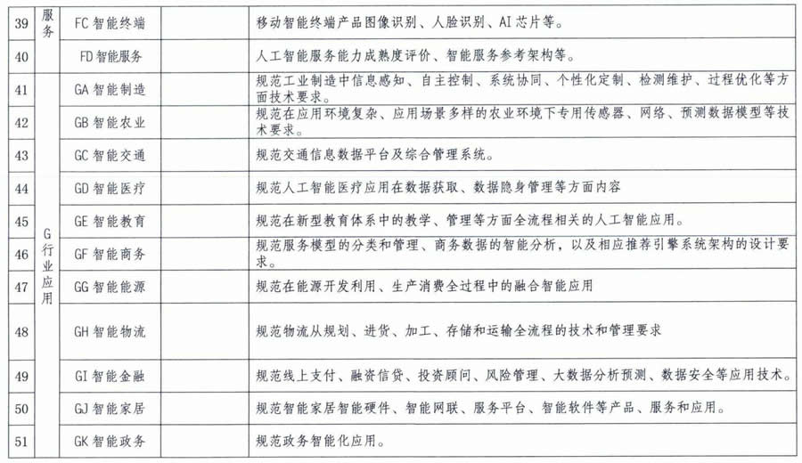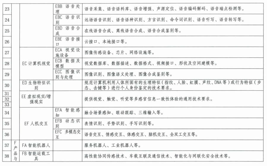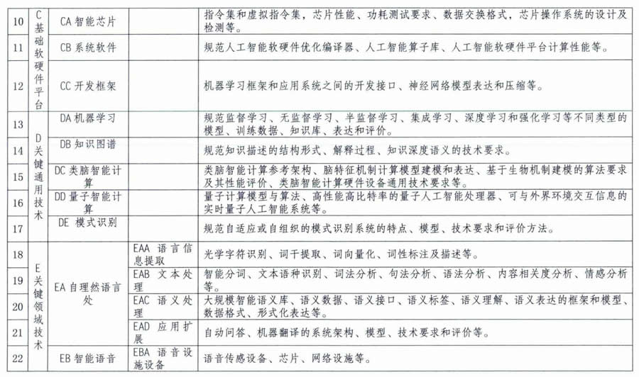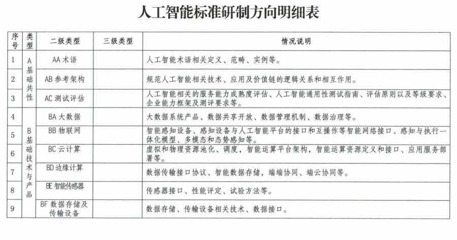 人工智能標(biāo)準(zhǔn)研制方向明細(xì)表