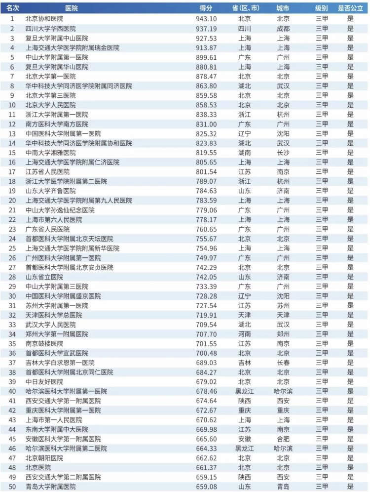 2019屆婦產(chǎn)醫(yī)院50強榜單