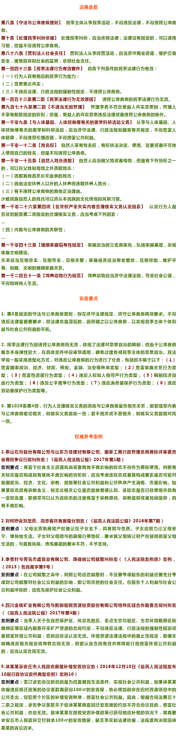 公序良俗是指公共秩序和善良風(fēng)俗,也是民法的基本原則之一。民法通則規(guī)定,民事活動(dòng)應(yīng)當(dāng)尊重社會(huì)公德,不得損害社會(huì)公共利益。實(shí)質(zhì)上就是指公序良俗,只是當(dāng)時(shí)存在較多意識(shí)形態(tài)禁忌,未明確使用公序良俗這一概念。民法總則和民法典立法時(shí)對(duì)此進(jìn)行了突破,明確使用公序良俗這一概念。公共秩序,是指政治、經(jīng)濟(jì)、文化等L域的基本秩序和根本理念,是與國家和社會(huì)整體利益相關(guān)的基礎(chǔ)性原則、價(jià)值和秩序。善良風(fēng)俗,是指基于社會(huì)主流道德觀念的習(xí)俗,也可稱為社會(huì)公共道德,是社會(huì)成員所普遍認(rèn)可、遵循的道德準(zhǔn)則。