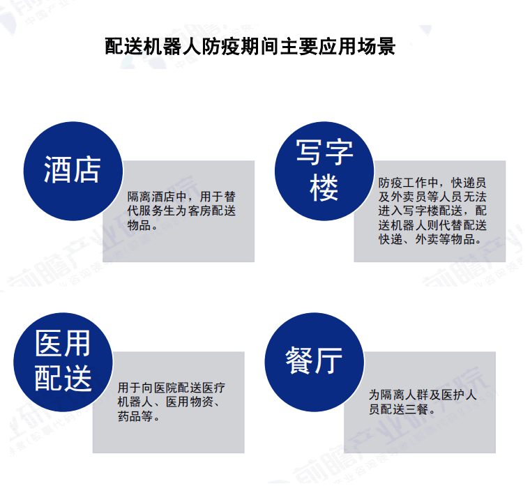 防疫機器人在配送L域主要企業(yè)有普渡科技、擎朗智能、賽特機器人、云跡科技等企業(yè),要應(yīng)用 于疫情防護中的醫(yī)用配送、餐飲服務(wù)、樓宇無人化配送等工作